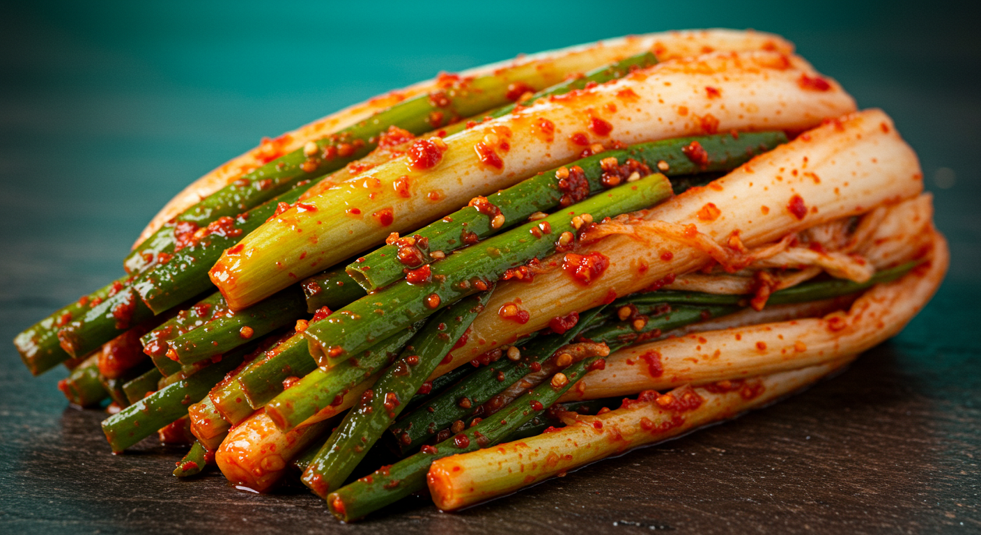 **대파김치**는 그 톡 쏘는 맛처럼 강력한 건강 효과를 지닌 특별한 김치입니다.