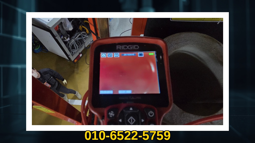 저희는 먼저 배관 내시경 카메라를 투입하여