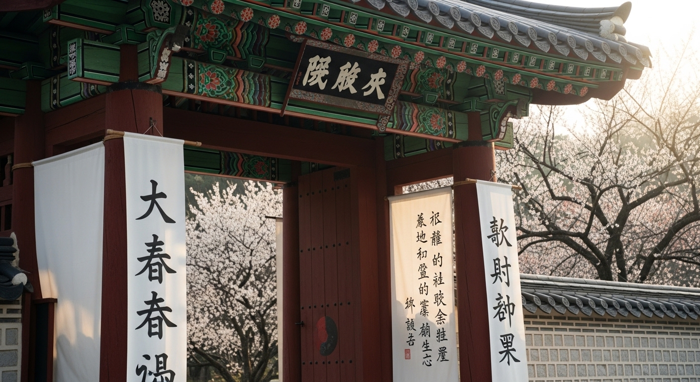 이 두 문구는 보통 '八'자 형태로 비스듬히 붙이는데, 이는 문을 열고 들어오는 복을 환영한다는 의미가 담겨 있습니다. 옛날에는 입춘시에 맞춰 붙여야 효험이 있다고 믿어 밤중에 일어나 붙이기도 했다니, 조상들의 간절한 마음이 느껴지지 않나요? 😊