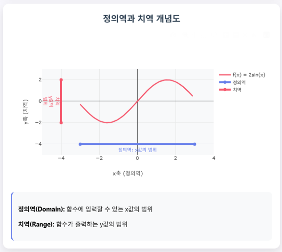 - 정의역: 함수에 입력할 수 있는 모든 x 값